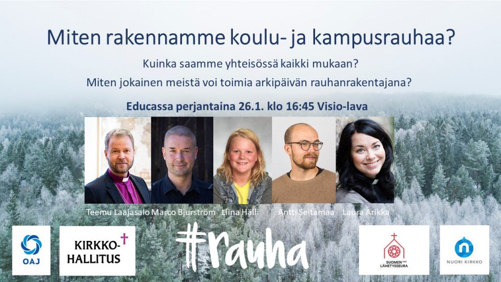 Opetus- ja kulttuurialan maamme suurimmassa tapahtumassa Educa-messuilla Helsingin messukeskuksessa 26.-27.1. pääset tutustumaan #rauha-teemaan kirkon osastolla 6 n 70.